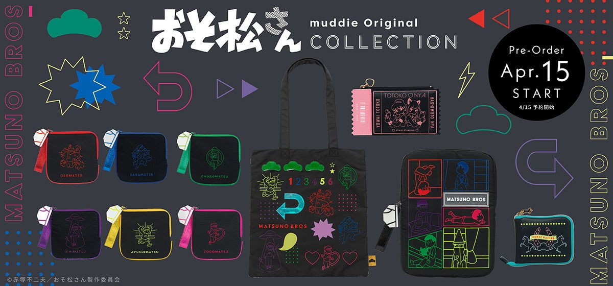 コンテンツ作品のファッション雑貨を展開するブランド”muddie”より、名探偵コナン・おそ松さん各シリーズの予約販売がスタート!