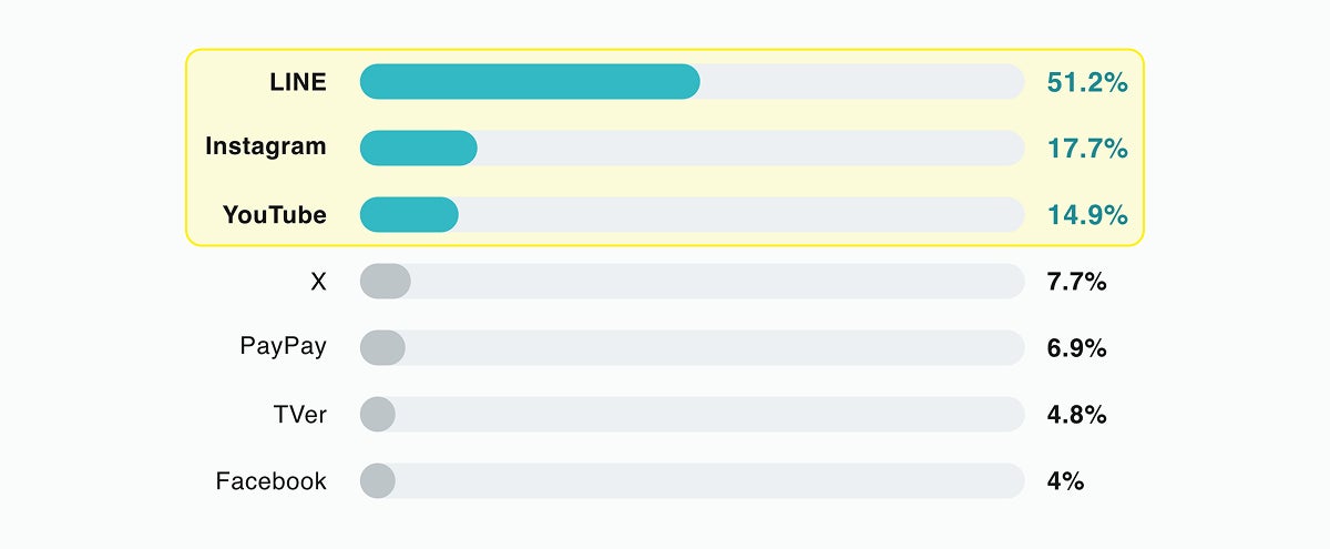「LINE」の日常利用が全世代で定着しているほか、自由回答では「推し活」「海外旅行」などの熱狂的な目的のために、「ChatGPT」や「Gemini AI」などの最新技術を使いこなす層の存在が確認された。