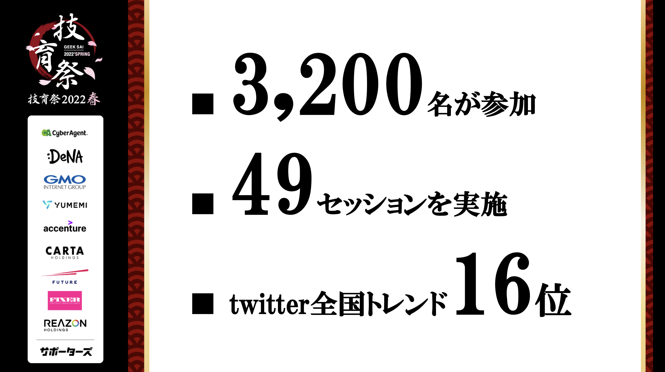 春と秋に開催し、計6,000名が参加する国内最大の学生エンジニア向けテックカンファレンスです。「技育祭(春)」は、3/17(木)~3/19(土)に開催し、3日間で3,200名に参加いただきました。