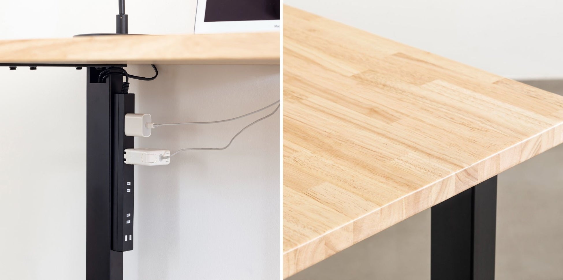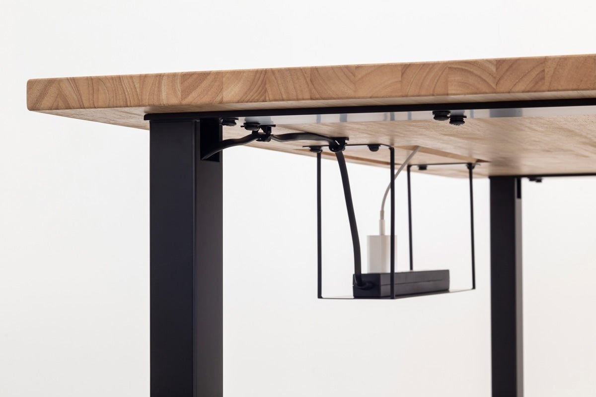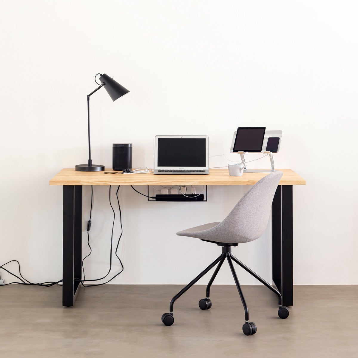 ラバーウッドを配線孔付きのテーブル脚と合わせることによって、デザイン性と機能性をあわせ持ったよりワークデスクに適したテーブルとなりました。