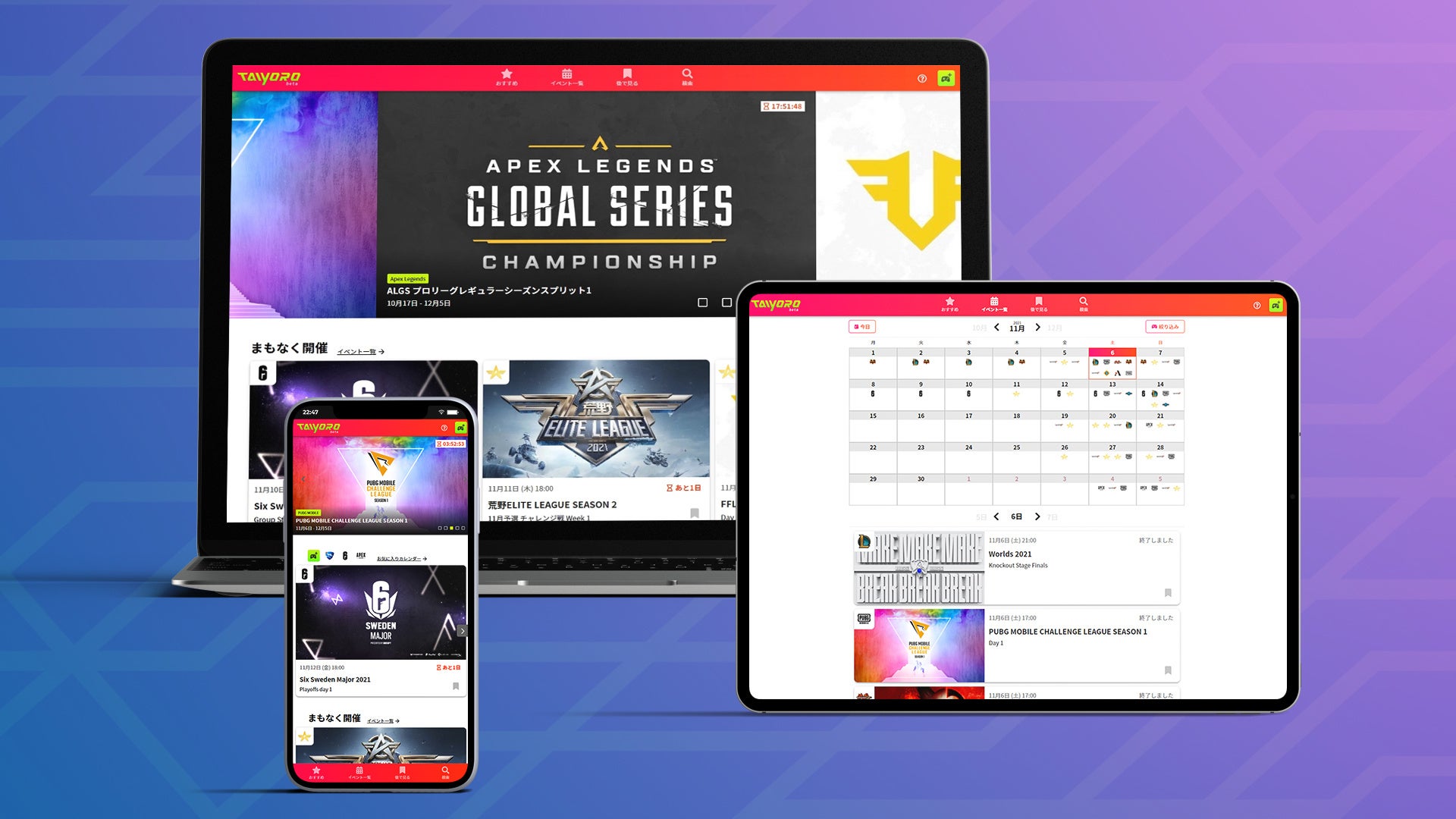 TAIYOROは過去に開催されたイベントのVOD配信から今後開催予定のイベントの配信情報まで、日本国内のeスポーツ大会の情報を網羅したeスポーツ観戦ファンのためのポータルサイトです。