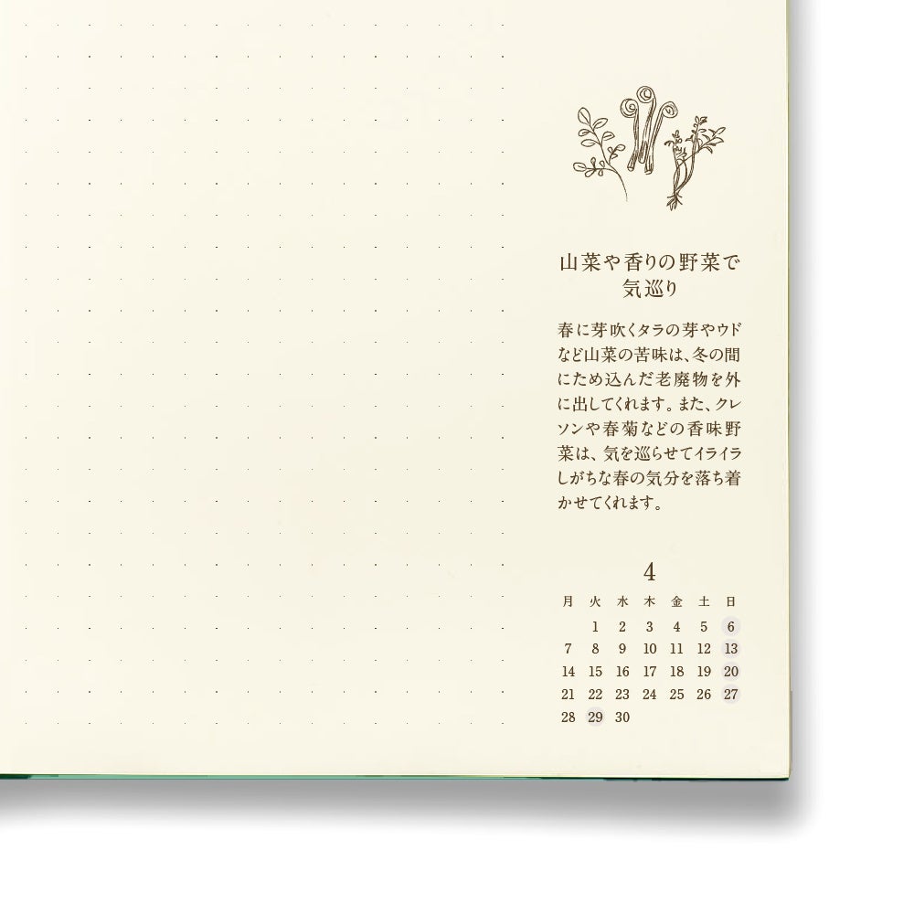 手帳を使うたびに、昔の人たちが自然とともに歩みながら見出した養生を手軽に実践できる、漢方専門店ならではの手帳です。