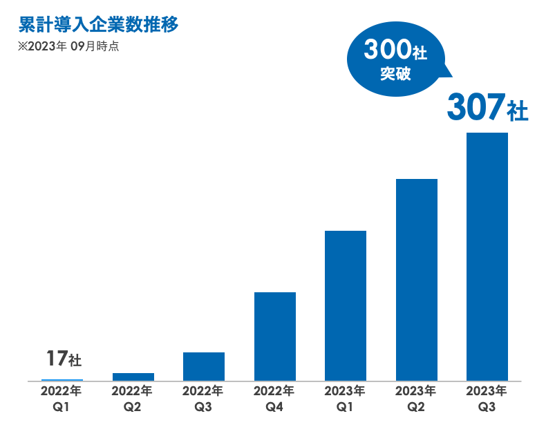 サービスリリースから1年8ヶ月が経過した2023年9月に、中小工務店はもちろん、スーパーゼネコンや大手建材メーカーまで累計300社以上に導入いただけるサービスに発展しました。住宅リフォームのみならず、様々な場所での工事やインフラ・ビルメンテナンスなどで活用されています。今後も住宅・建設領域における課題の解決を目指し、機能開発・支援を行って参ります。