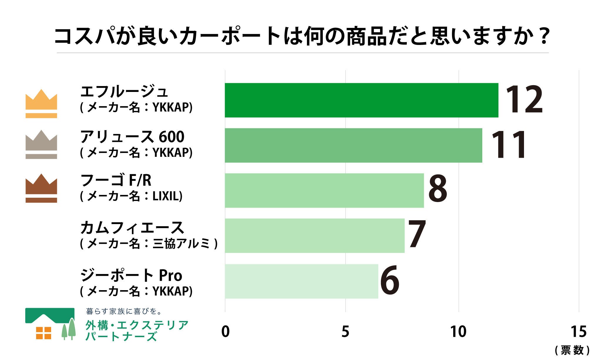 ~コストパフォーマンスではYKKAPのエフルージュ、デザインではLIXILのカーポートSCが一位~