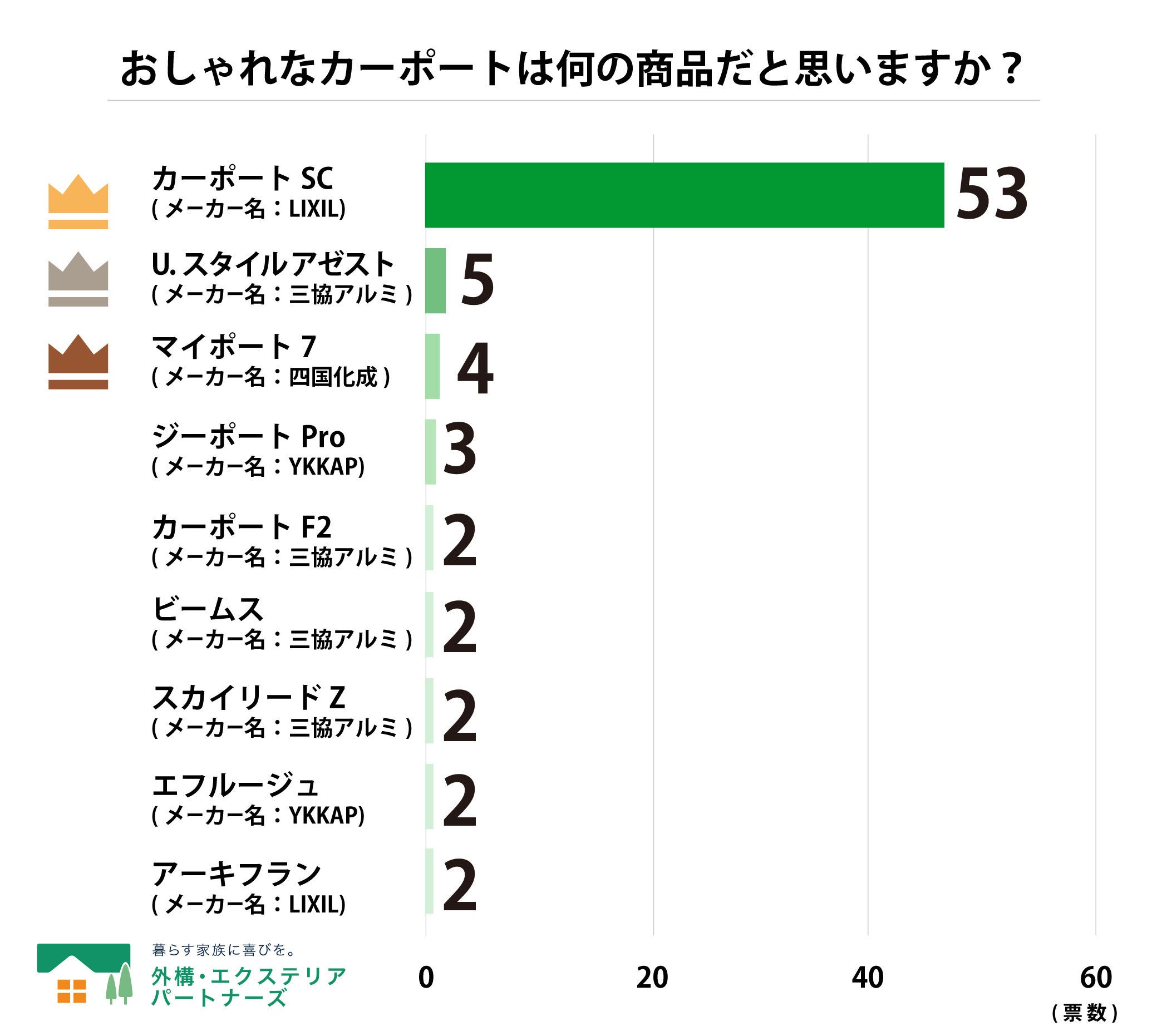LIXILが販売するカーポートSCが圧倒的票数で1位となりました。