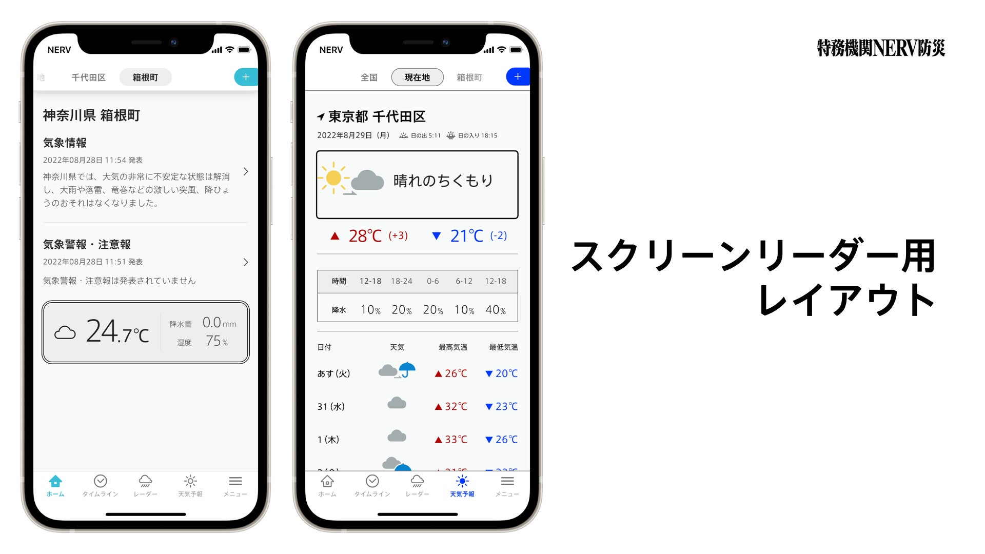 「特務機関NERV防災」アプリ、アクセシビリティ機能を大幅強化