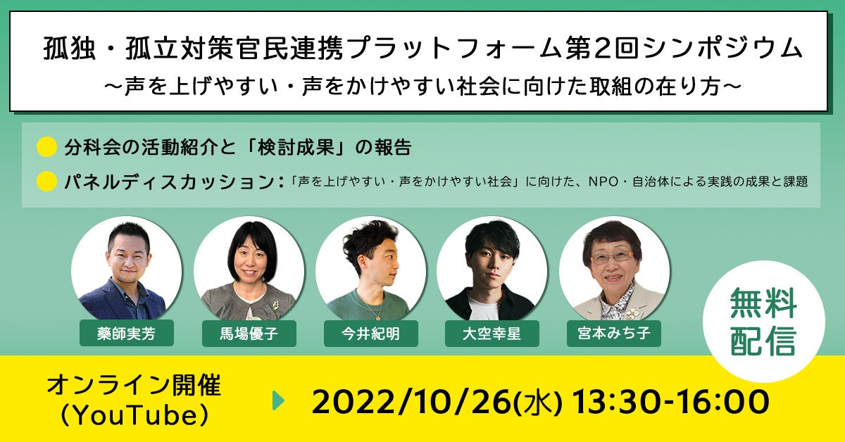 【10/26(水)開催】孤独・孤立対策官民連携プラットフォーム第2回シンポジウムのご案内