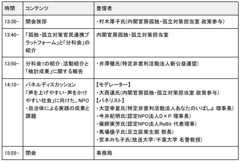 13:40-「孤独・孤立対策官民連携プラットフォーム」と「分科会」の紹介<内閣官房孤独・孤立対策担当室>