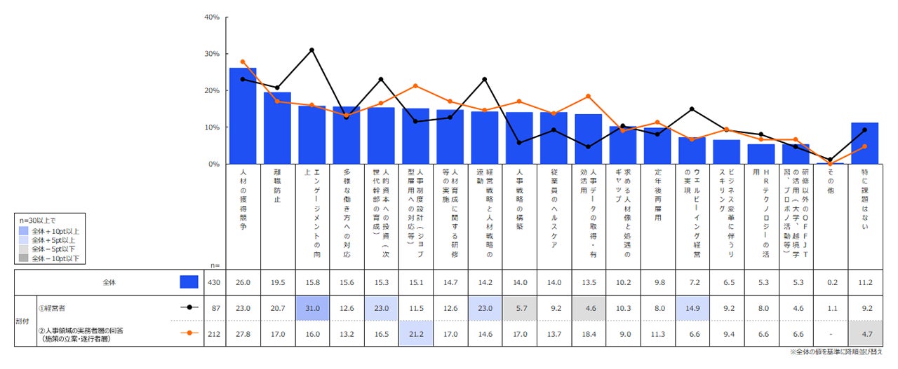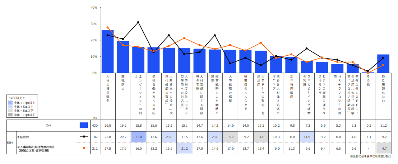 ・経営層は最も重要な人事課題としてエンゲージメント向上をあげている(31.0%)