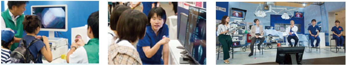 当日は、臨床検査技師や看護師などの医療従事者から学べる「医療の仕事体験」や、内視鏡の操作体験など本物の医療機器に触れることができる「ドクターのトレーニング体験」など、体験コーナーがたくさんあります。また、「オペ室再現スペース」では、日替わりで心臓カテーテル、腹腔鏡手術の実演を実施します。計4回のトークライブを開催し、現役の医療従事者が現場からの思いを、みなさまにお届けします。