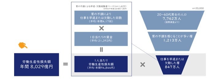 新国民病「胃の不調」による経済損失額は年間8000億円超! 推計847万人が「仕事に行けない」ほど深刻な状態に 花粉症・生理痛・頭痛と同程度のパフォーマンス低下を実感