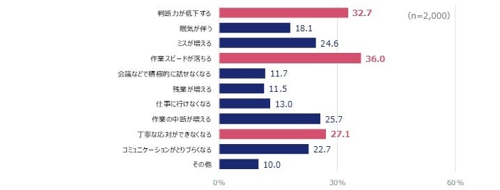 仕事に及ぼす影響は作業スピードや判断力の低下など多岐にわたる |