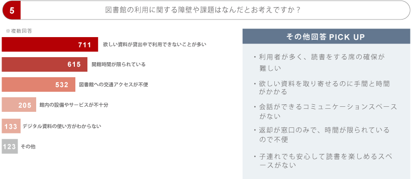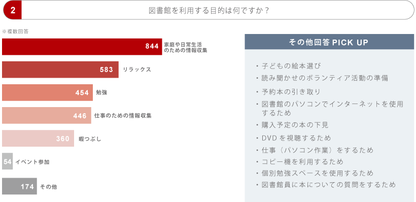 図書館の利用目的は、家庭や日常生活のための情報収集。無料で気軽に利用できる反面、障壁や課題も発生。