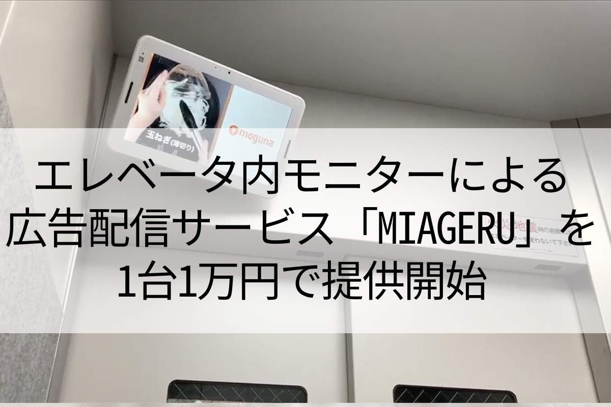 エレベータ内モニターによる広告配信サービス「MIAGERU」を1台1万円で提供開始