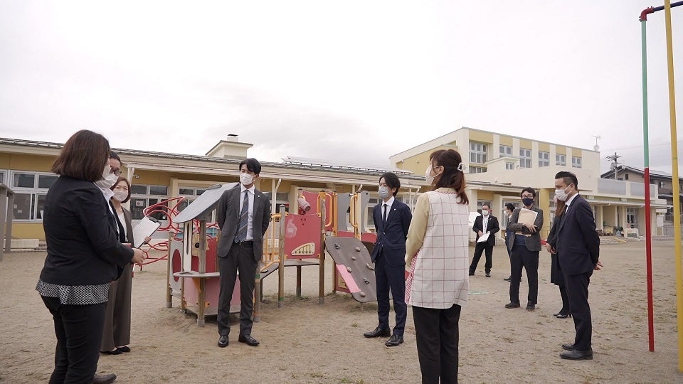 10月5日に当社は企業版ふるさと納税を活用し、宮城県東松島市に訪問して大曲保育所様、大塩保育所様の遊具購入支援を行いました。