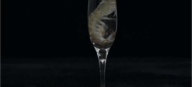 ※検証のためにエビをドライアイス上に置く実験しています、危険ですのでマネしないでください。