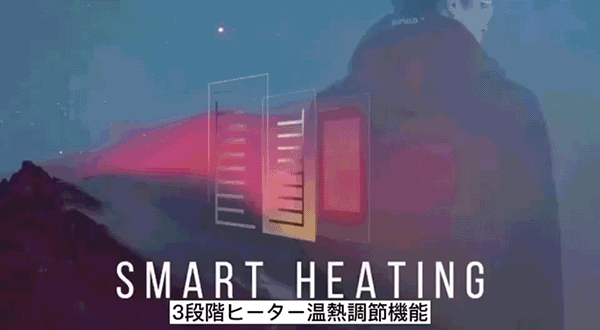 エアロゲルの断熱性に加えて、キャンプやウインタースポーツを更に快適に過ごしていただけるよう、ヒーター機能を追加いたしました。