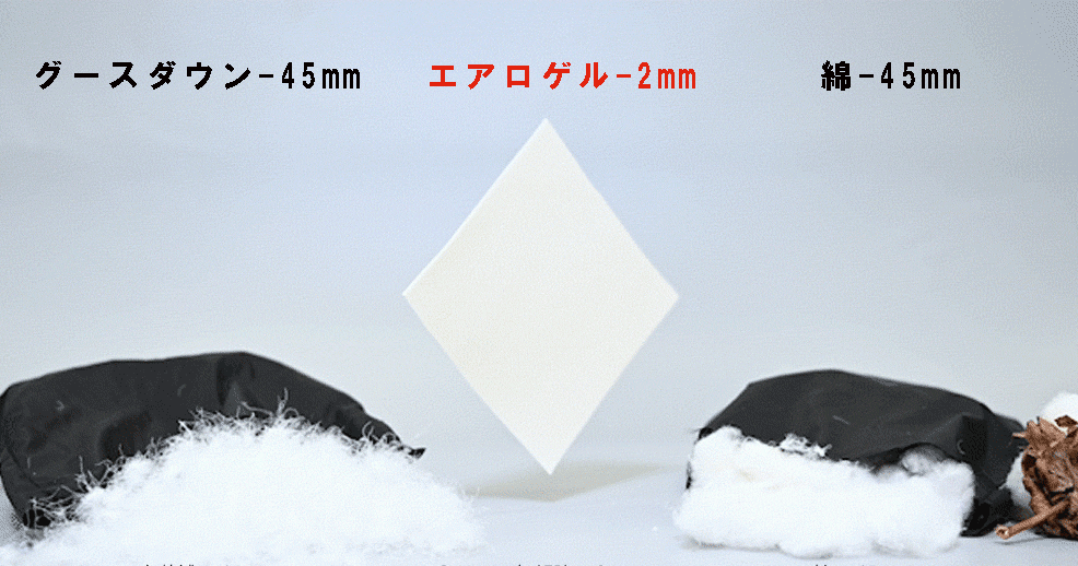 - NASAが宇宙服に使用する断熱材(エアロゲル)を使用!