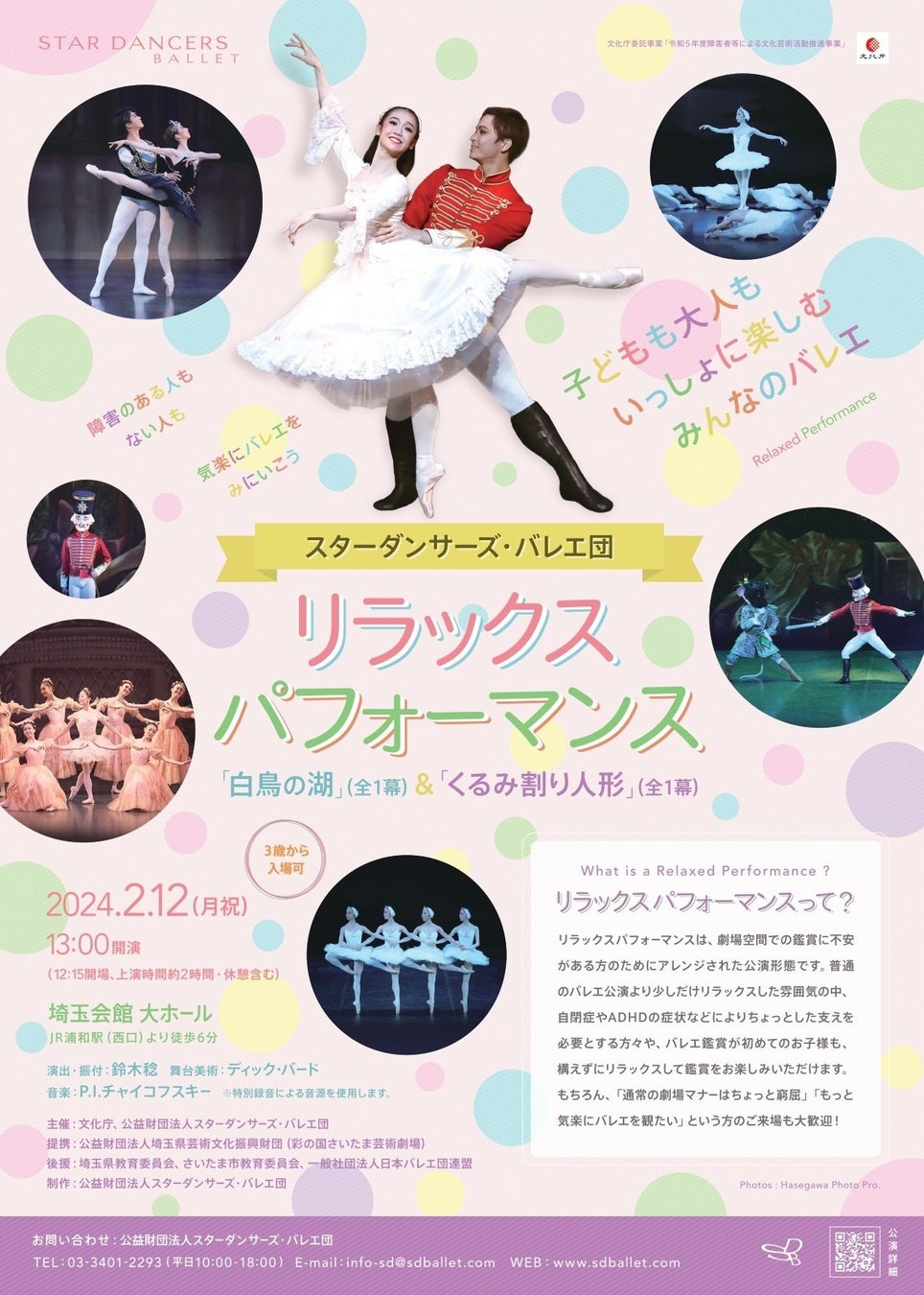 公益財団法人スターダンサーズ・バレエ団(東京・港区)では、2024年2月3日(土)に神奈川県民ホール(横浜市)、2月12日(月祝)に埼玉会館(さいたま市)において、リラックスパフォーマンスによるバレエ公演を開催いたします。