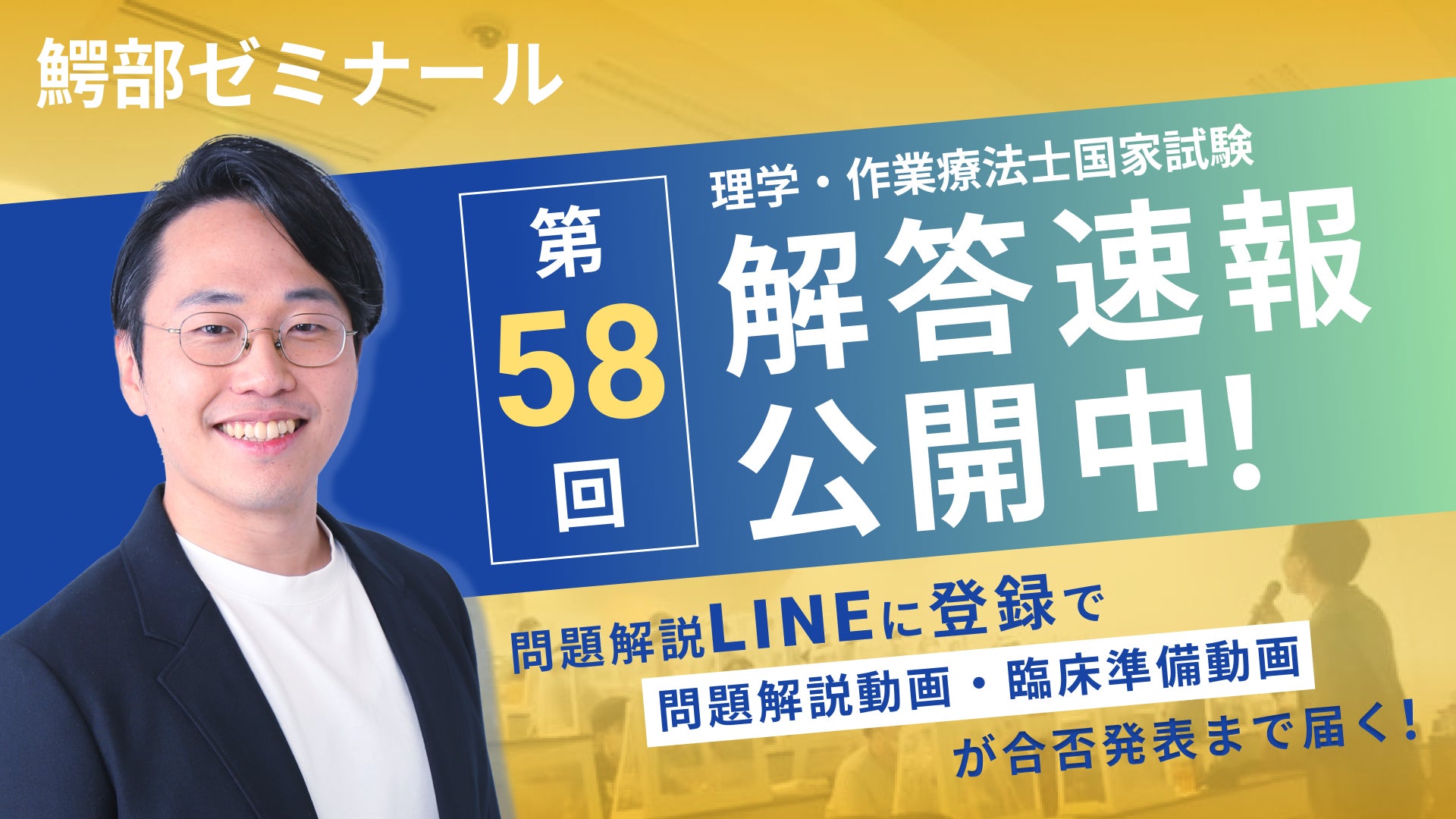 【総評・分析・解説動画】第58回 理学療法士・作業療法士国家試験特設ページを浪人生専門塾 鰐部ゼミナールが公開! 臨床準備動画・問題の解説動画を視聴可能な新サービスをリリース!