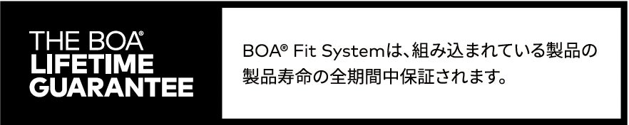 BOA®フィットシステムはあらゆる面において、厳格な耐久性基準を満たすよう設計され、精密にデザインされ、最先端の施設で製造されています。だからこそ、どんな ターンでもあなたを失望させません。自信を持ってそう言えます。そして保証します。