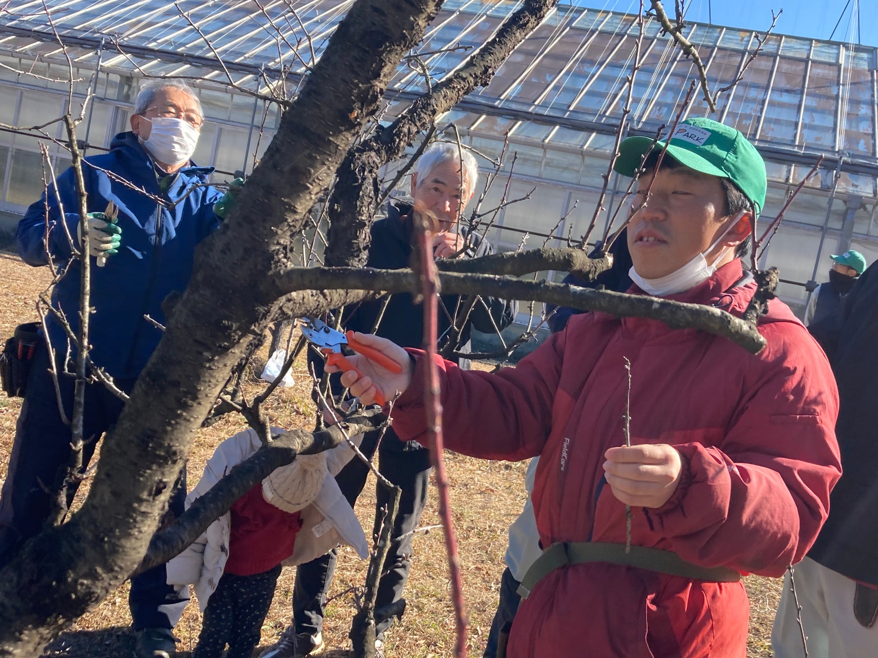 フルーツパーク園内 東エリアの「アーモンド広場」では約100本のアーモンドの花が咲き始めています。