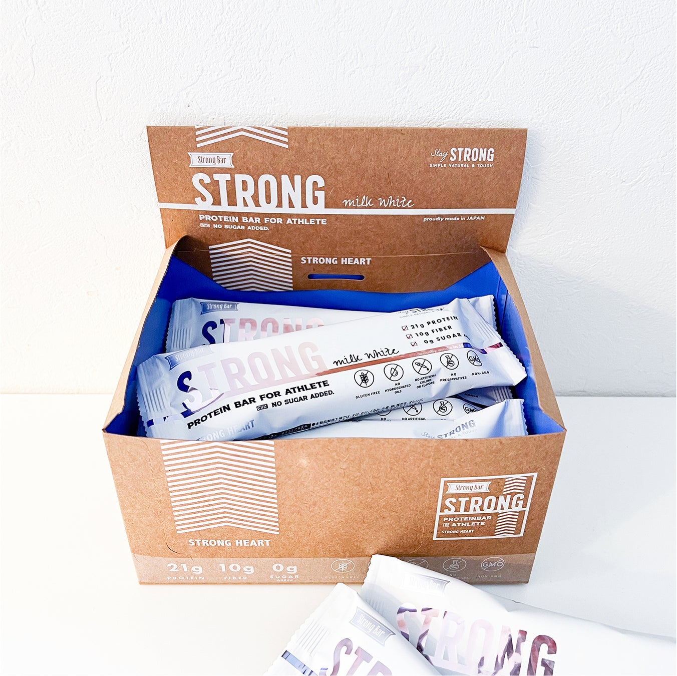 「ストロングバー」は無添加で美味しく食べられる、たった8つの原材料でつくられたシンプルなプロテインバーです。その主要成分であるプロテインには、プロテインの本場、アメリカ合衆国産の加水分解ミルクプロテインを使用。本格アスリートにもおすすめ*のミルクプロテインです。