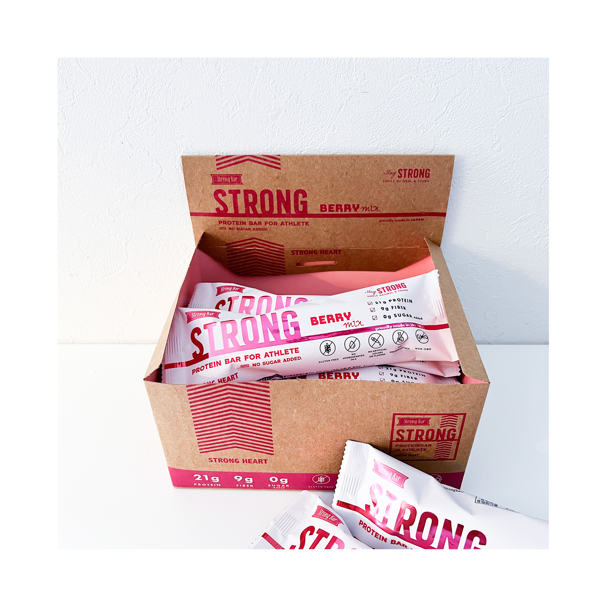 株式会社ストロングハート(本社:東京都港区、代表取締役:鈴木一也)は、「強くしなやかなカラダづくりを⽬指す」人々のためのプロテインバー「ストロングバー」の販売開始から5年目を迎えた今年、累計販売実績が200万本を達成したことを機に、開発に込めた原点の想いに立ち返り、SIMPLE, NATURAL & TOUGHという基本コンセプトはそのままに、さらにそのこだわりを進化させた4つのフレーバーの新製品を開発。7月2日から当社「STRONGHEART SHOP」(https://strongheartshop.com/) をはじめ、一部コンビニエンスストア店舗で発売を開始しました。