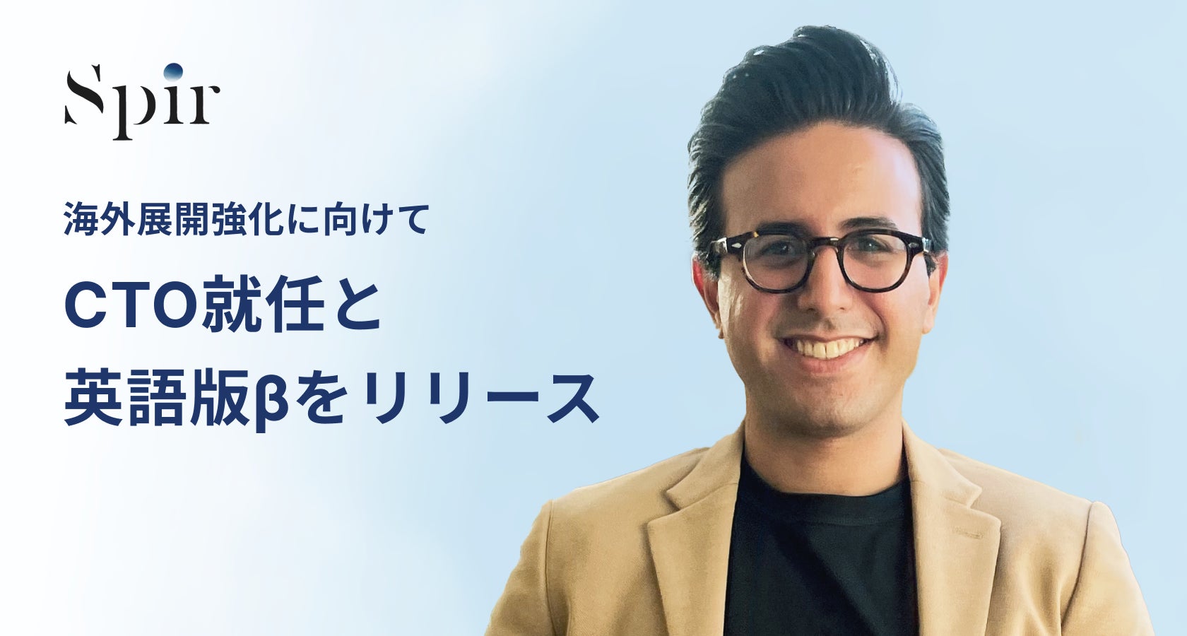 日程調整ビジネスカレンダー「Spir(スピア)」を展開する株式会社Spir(東京都港区、代表取締役:大山晋輔、以下当社)は、英語圏でご利用頂けるSpir(β版)をリリースし、またCTO(最高技術責任者:Chief Technology Officer)にIsmail Haimoura(イスマイル ハイモウラ)が就任したことをお知らせします。