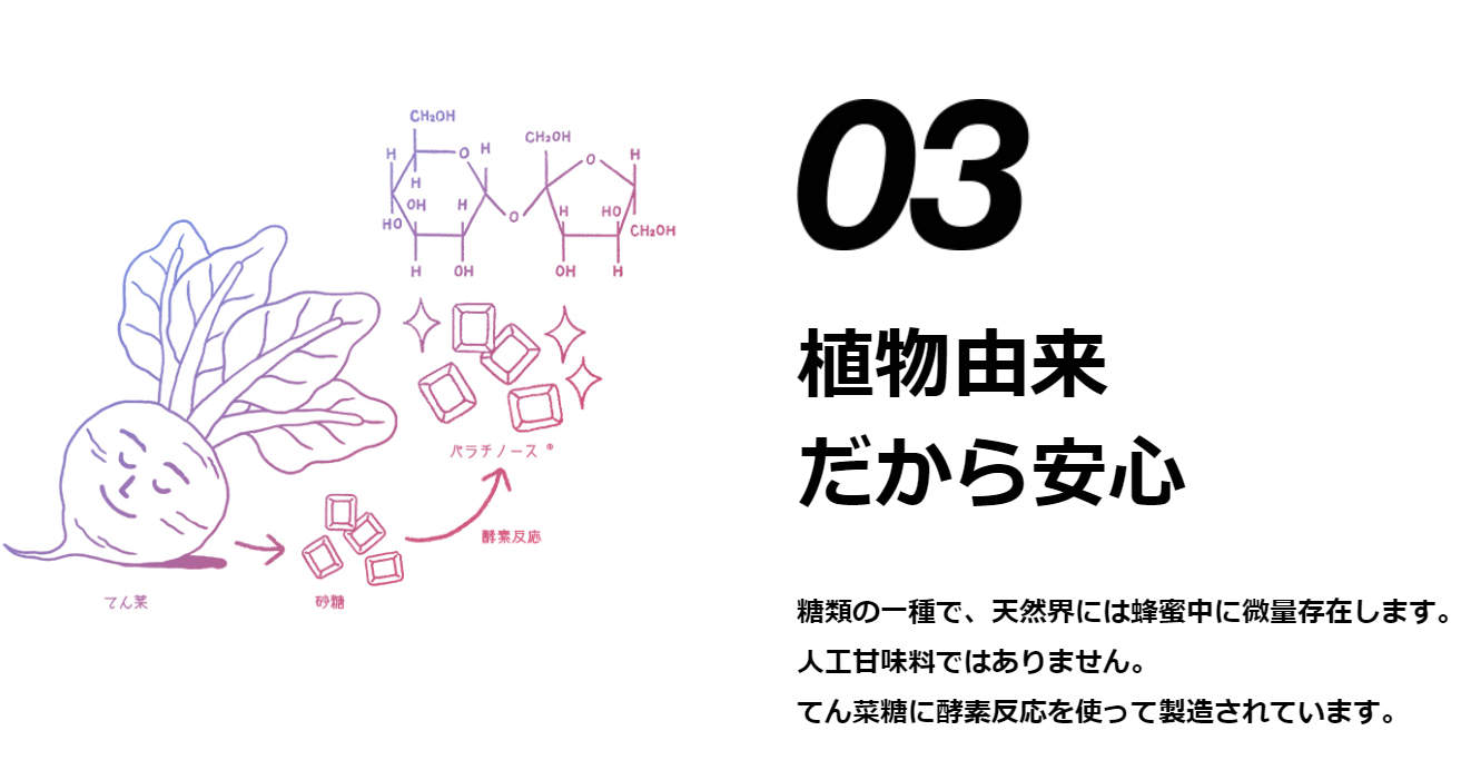 ●てん菜からつくられる植物由来の糖質「パラチノース」使用