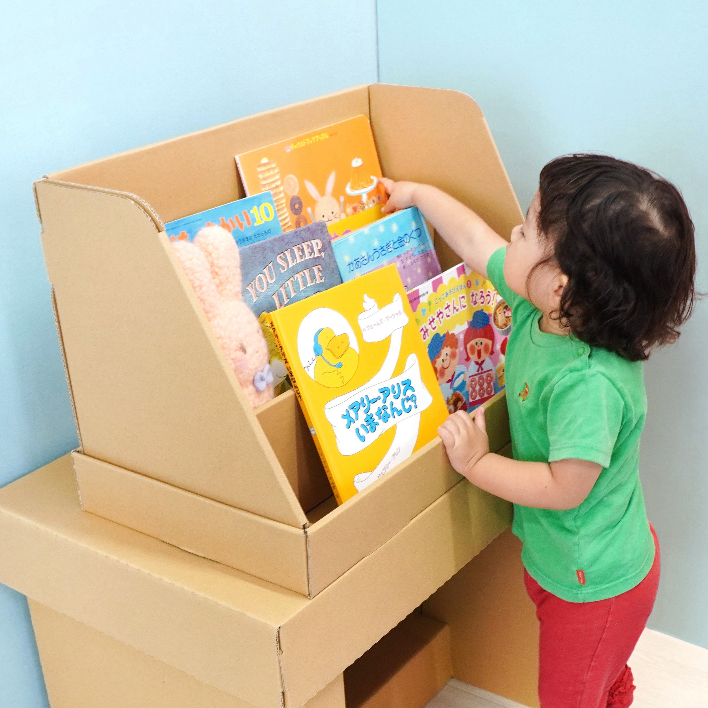 分厚い本も収納できるしっかり丈夫なラックです。表紙がみやすく、小さなお子さまでも好きな本が簡単に取り出せます。