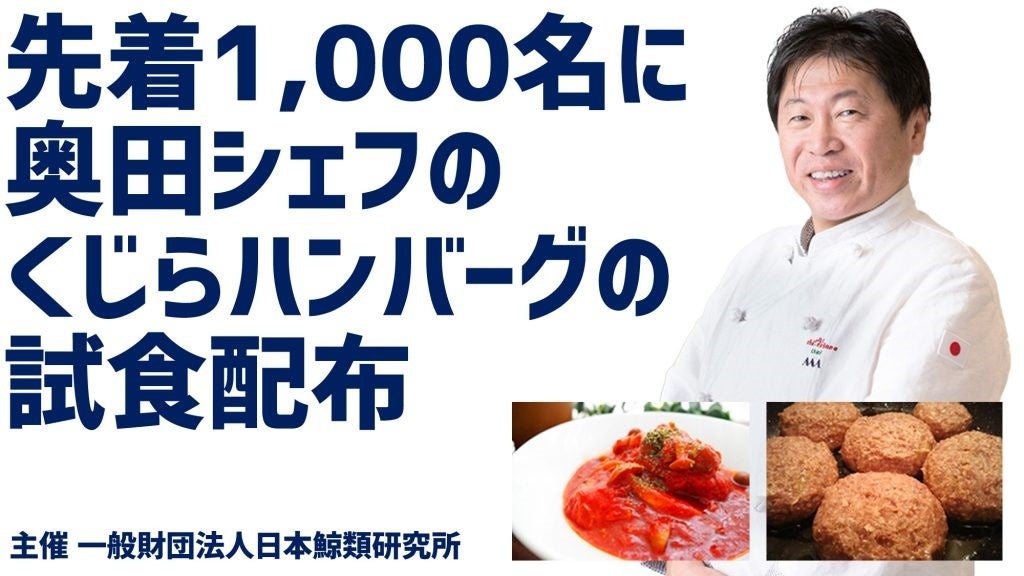 「たべるくじらのがっこう」のスタンプカードを受け取って、アンケートに答えた先着1,000名様に、世界的に有名なイタリアンの巨匠「アル・ケッチァーノ」の奥田シェフ考案「くじらハンバーグ」の試食を配布します。