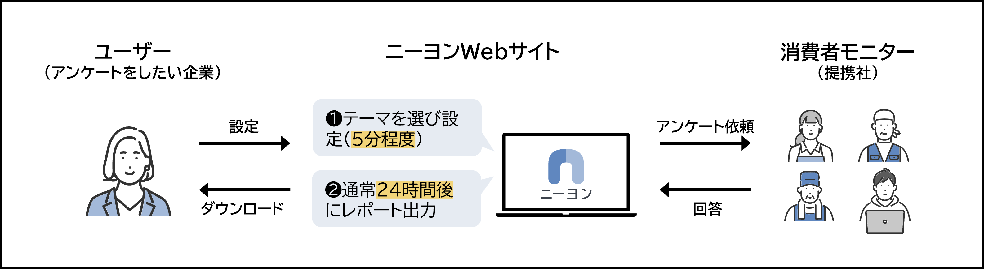 また、多くのリサーチ会社様や頻繁にリサーチを実施される企業様から「自社内のDX推進にニーヨンの仕組みを取り入れたい」というご要望をいただいており、今後、各社のニーズに合わせた「専用カスタマイズパッケージ」の提供も開始いたします。AI技術を組み込んだリサーチ基盤の構築を支援することで、業界全体の生産性向上に寄与してまいります。