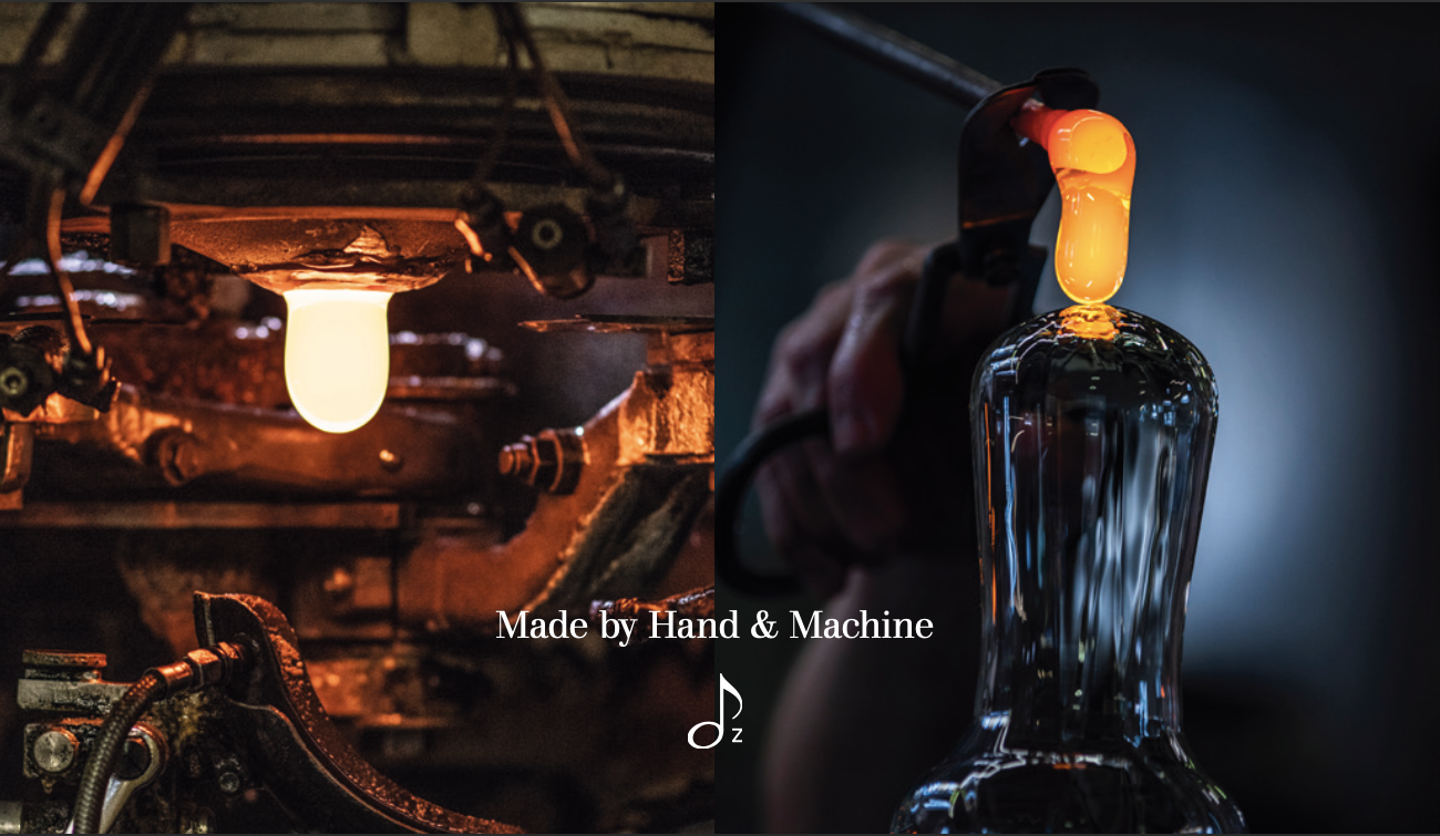 それはまるで二人のアーティストが共演して生み出す音楽作品のように、『職人技』(ハンドメイド)と『機械製造』(マシンメイド)が融合し、誕生したハイブリッドグラスです。