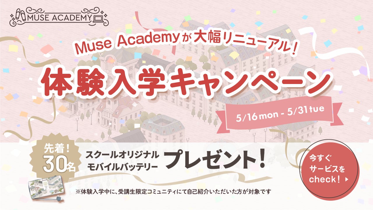 Muse Academyに初めて無料体験入学してくださった方、先着30名にオリジナルモバイルバッテリーをプレゼントします!
