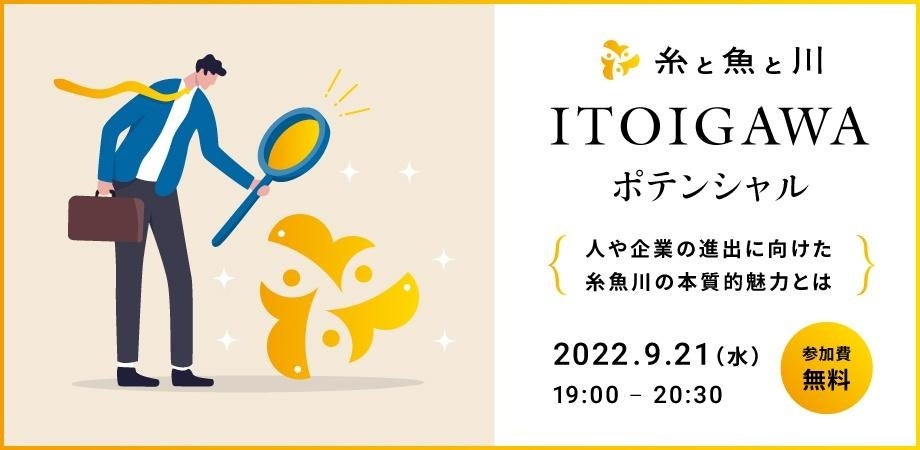新潟県糸魚川市主催の『糸と魚と川』 Vol.07/ 「ITOIGAWAポテンシャル」〜人や企業の進出(新しいヒトの流れを創る)に向けた糸魚川の本質的な魅力とは?〜が現地(駅北広場キターレ in 糸魚川)と オンラインのハイブリッド形式にて開催されます。弊社代表渋谷がモデレーターとして登壇します。