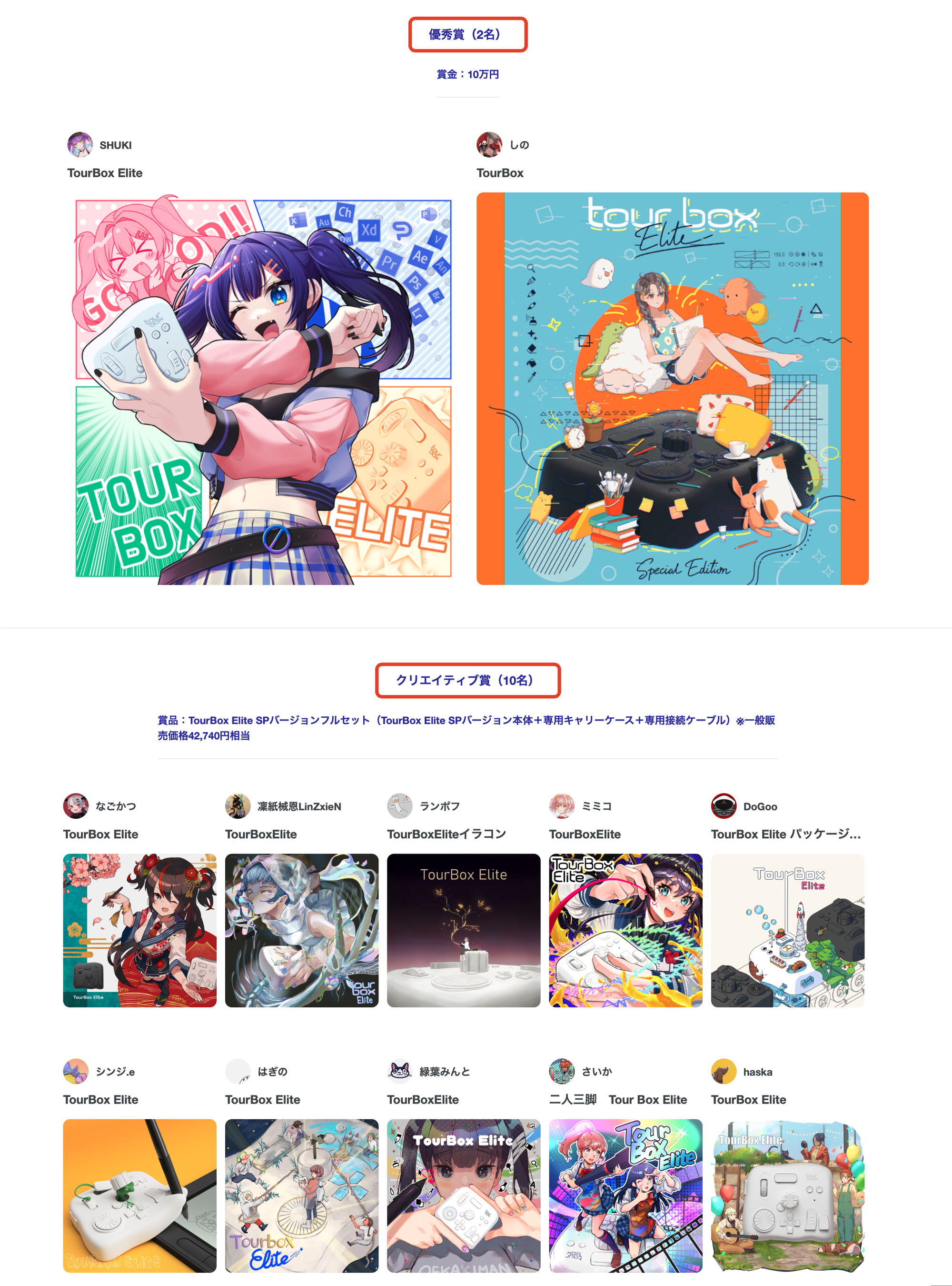 現在、クラウドファンディングで1.4億円以上を集めている最中(終了は、4月30日)のPC・Mac用クリエイティブコントローラー(通称、左手デバイス)の最新型モデル『TourBox Elite(ツアーボックス エリート)』。本製品『TourBox(ツアーボックス)』シリーズの開発・販売を手がけているTourBox Tech Inc.(ツアーボックス テック、本社:シリコンバレー、以降TourBox Tech社)は、イラストコミュニケーションサービス「Pixiv(ピクシブ)」とコラボレーションを行い、3月1日から4月3日までPixivにてTourBox Eliteイラストコンテストも開催いたしました。300枚以上の素晴らしい作品が届き、TourBox Tech社のスタッフ一同、とても感謝感激しております。このたびは、たくさんのご応募、誠にありがとうございました。