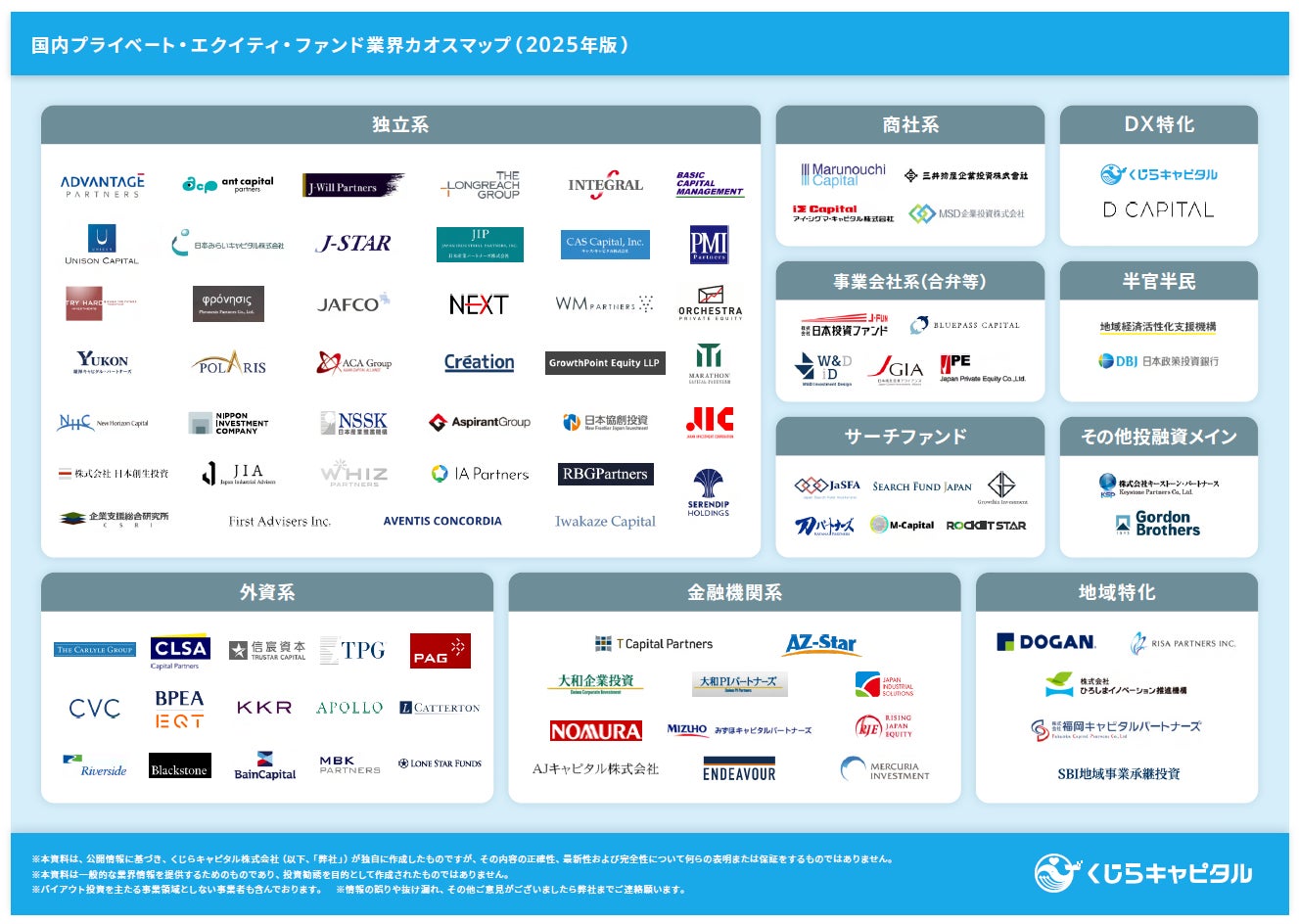 くじらキャピタル、毎年恒例の国内PEファンドのカオスマップ(2025年版)を発表