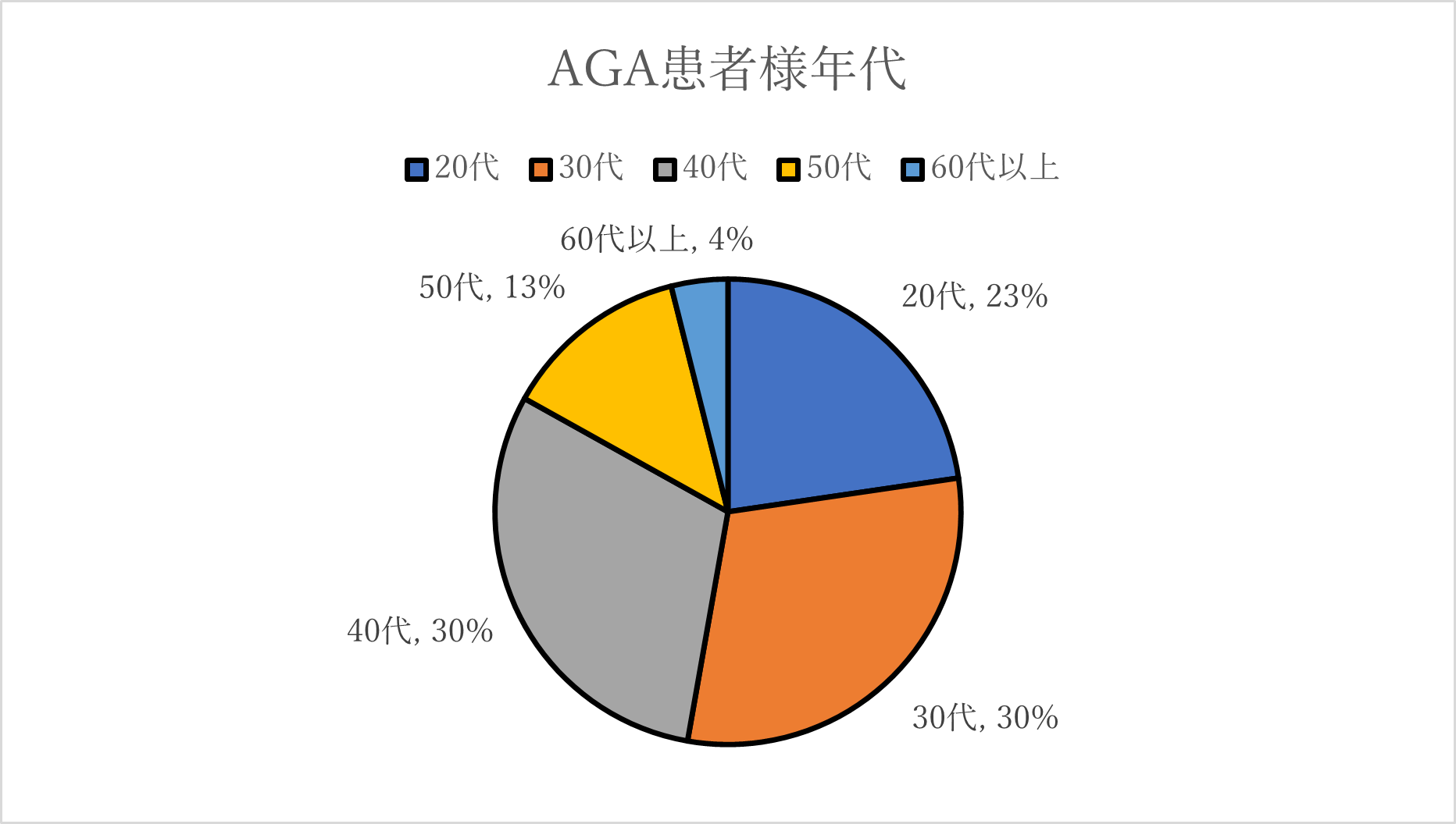 これまで30代~50代の患者様が非常に多い傾向にありましたが、近年ではAGAの可能性を判断する検査キットの普及や育毛剤だけではAGAの進行を抑制しきれないという認知も広がり20代の若い世代の患者様も増加してきました。