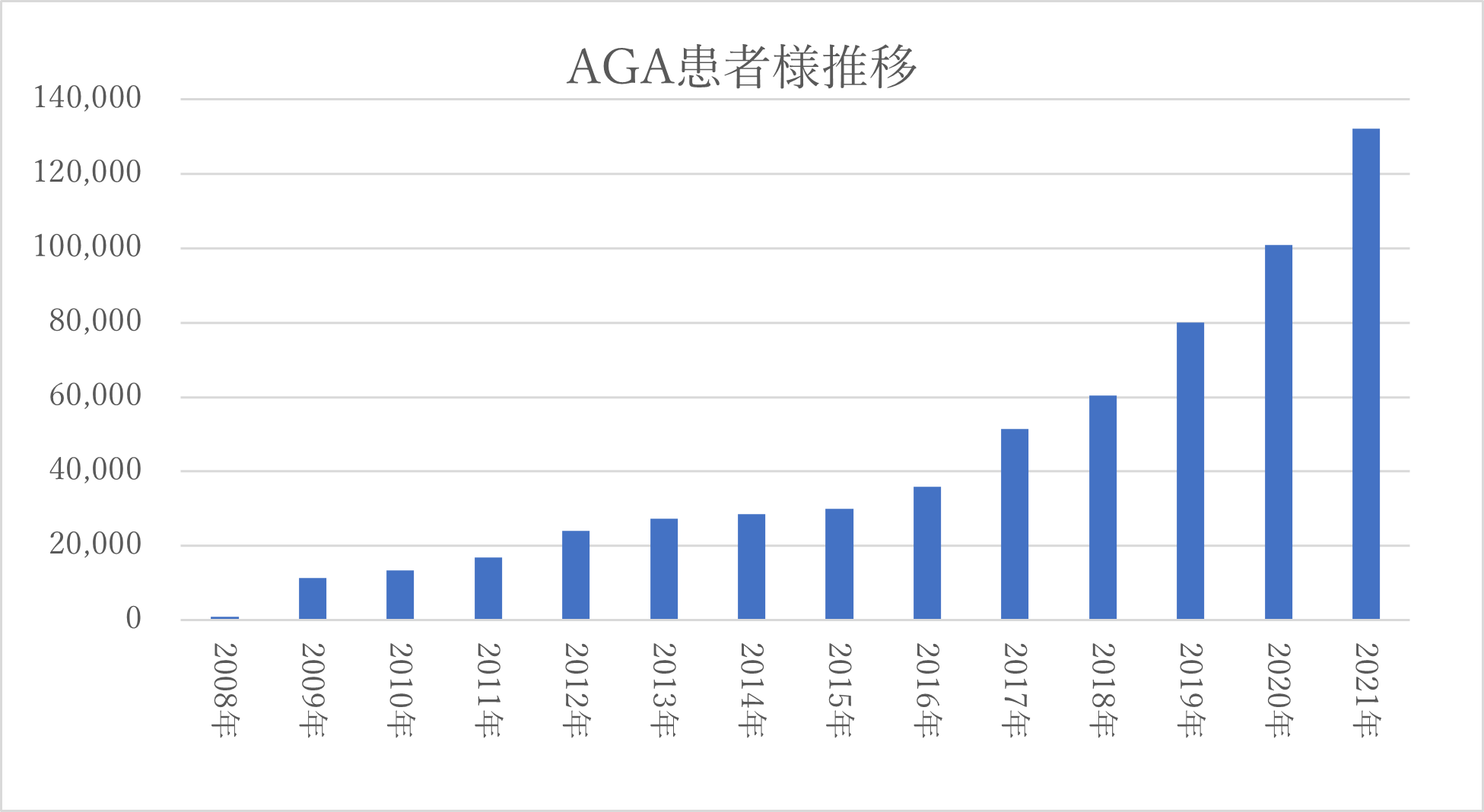 AGAは日本人男性の3人に1人が発症すると言われており、当院では1カ月間で1万人以上の患者様が治療を行っております。