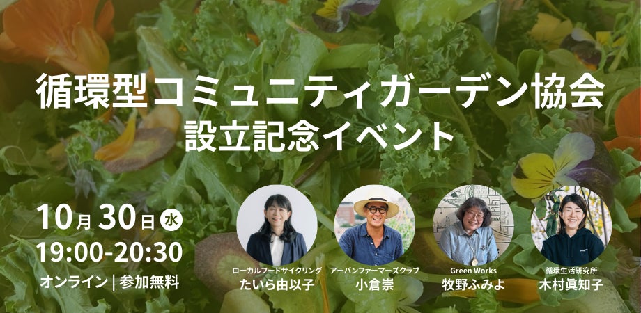 「循環型コミュニティガーデン協会」設立を記念して、オンラインイベントを開催します。どなたでもご参加いただけますので、お誘い合わせの上、お申し込みください。