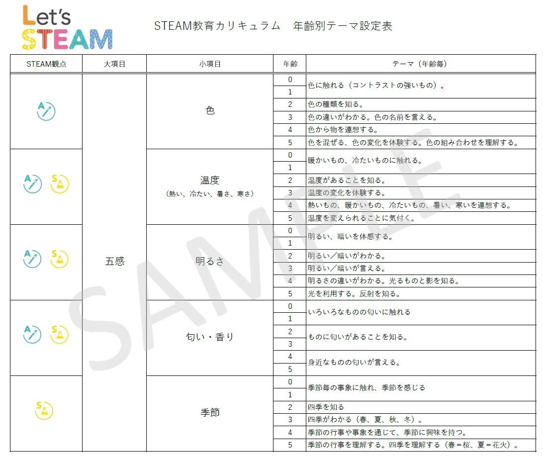 Let’s STEAMは、幼児教育・保育そしてITのプロフェッショナルが、幼稚園教育要領、幼保連携型認定こども園教育・保育要領、保育所保育指針に沿って開発した、独自のSTEAM教育プログラムです。
