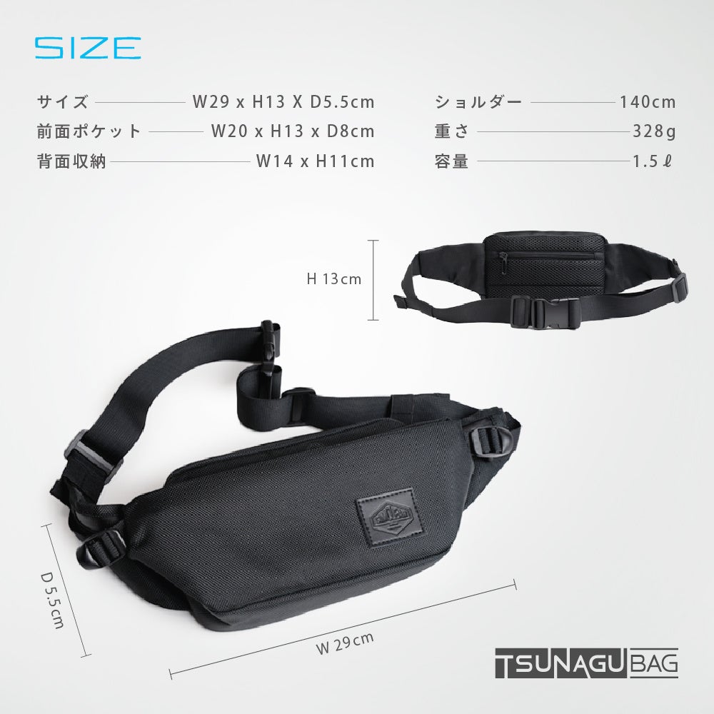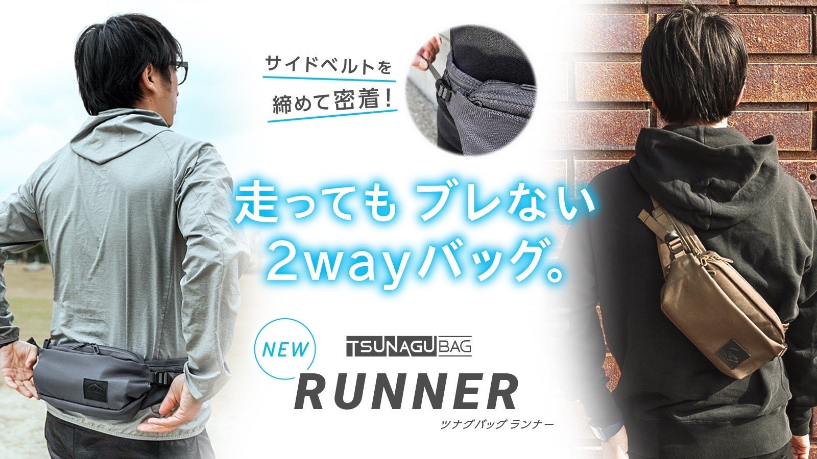 【第三弾】TSUNAGU BAG RUNNER(ツナグバッグランナー)はスタイリッシュなデザインで両サイドのベルトで究極のフィット感を実現。ランニングやレジャーだけでなく斜め掛けバッグとして日常でも使える2WAYスタイルです。