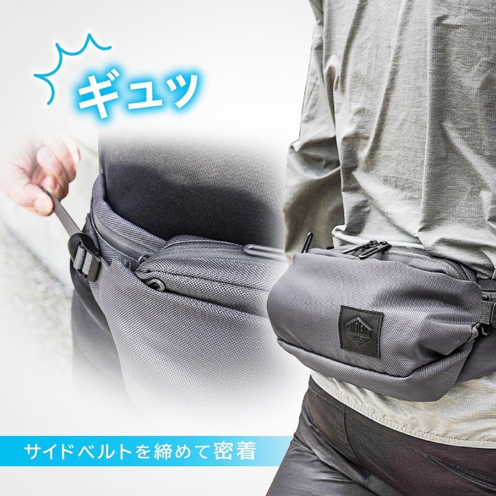 ウエストバッグ 特有の上下の揺れもなくなり運動やレジャーシーンでも快適に装着できます。