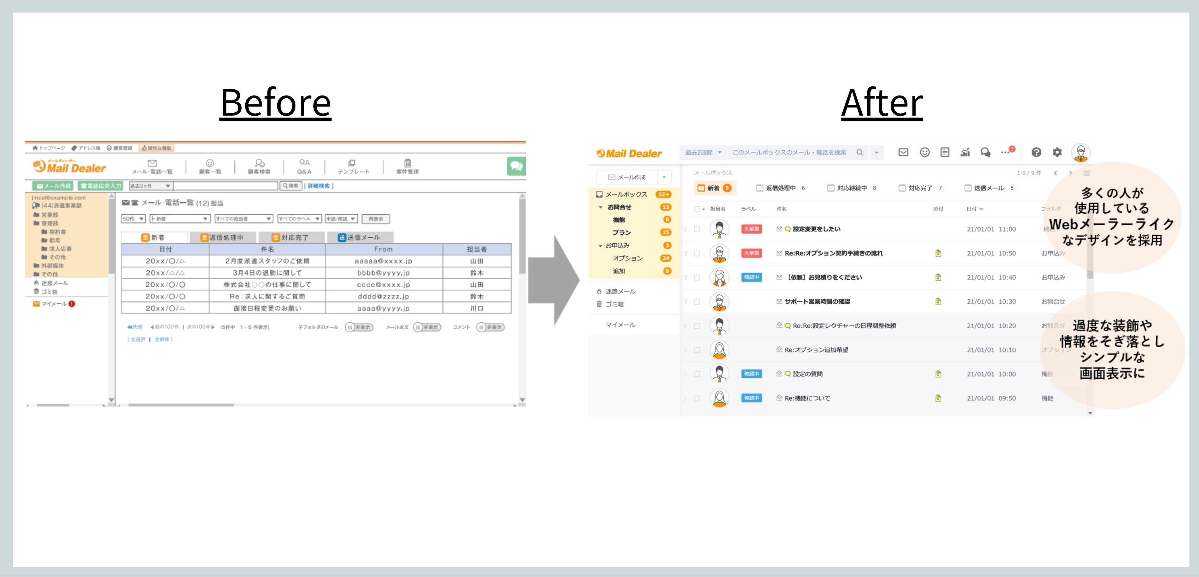 - 利用ユーザーが直感的に操作できるよう使い慣れたWebメーラーに近い画面表示へUIを刷新
