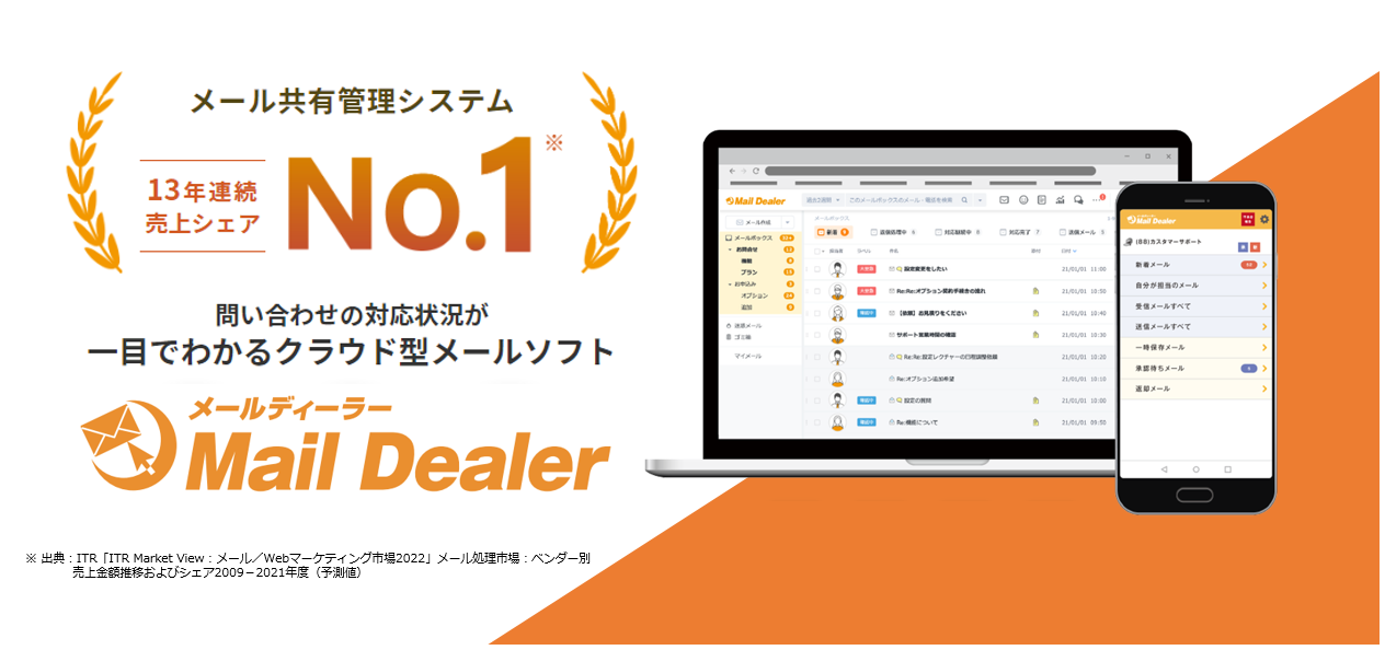 - 13年連続売上金額シェアNo.1※!メール共有・管理システム「メールディーラー」とは