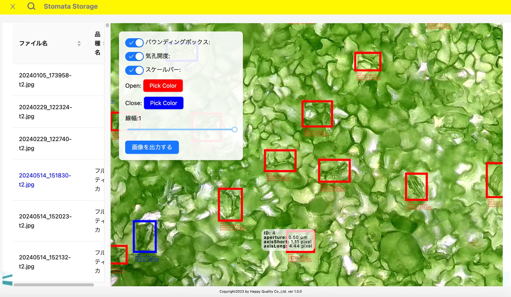 AIやIoTなどアグリテック開発により高品質・高単価な農産物を周年栽培可能にし、全量買取することで儲かる農業を実現する株式会社Happy Quality(本社:静岡県浜松市、代表取締役:宮地 誠、以下:ハッピークオリティー)は、植物の気孔をリアルタイムで観察・解析できる「Stomata Scope」の検出モデルを新たに12種類に拡大しました。また、ユーザーの要望に応えた「複数枚同時撮影機能」のβ版の開発を決定。より効率的なデータ取得を可能にしました。