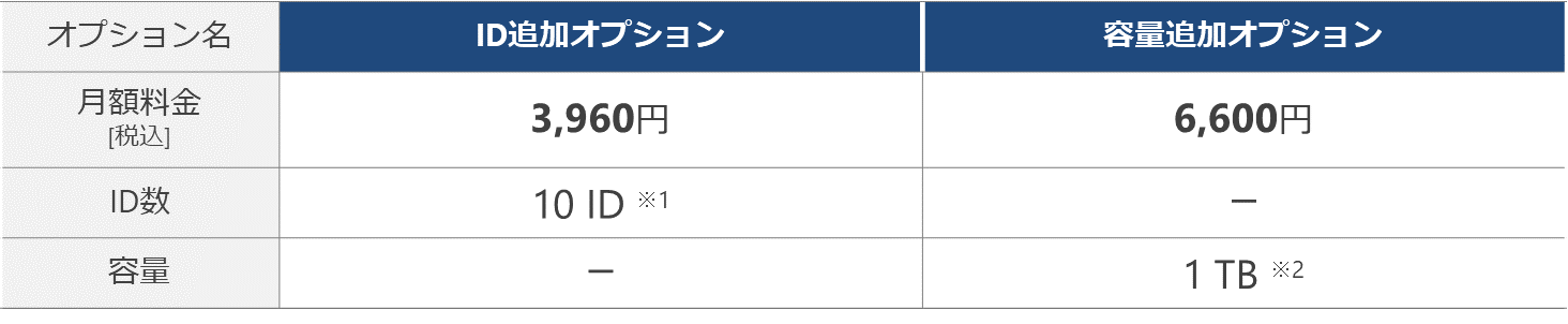 ※2 容量追加オプションのお申込みは1TB単位で、20TBまでとなります。