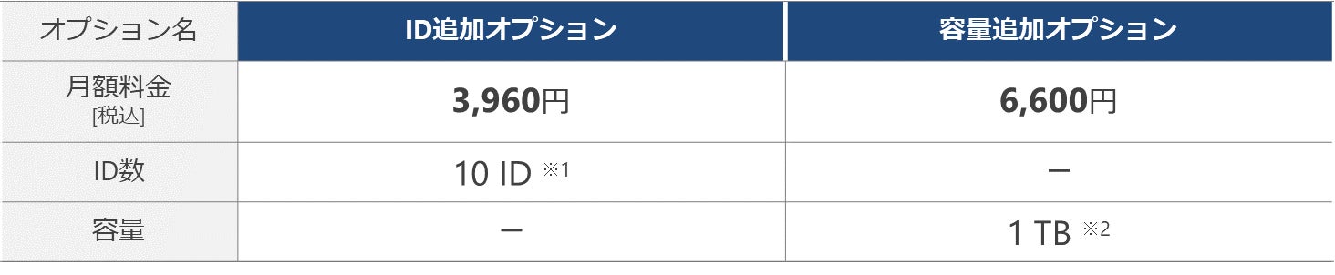 ※1 ID追加オプションのお申し込みは10ID単位で、500IDまでとなります。