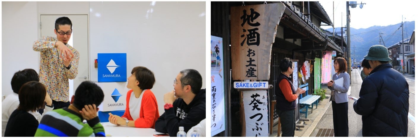 過去5年県外からの新卒入社が8割以上のSAWAMURA。新卒1年目の社員を対象に、地元高島を知るための課外学習や移住者インタビューを実施し、高島の歴史や文化への理解を深めます。
